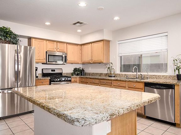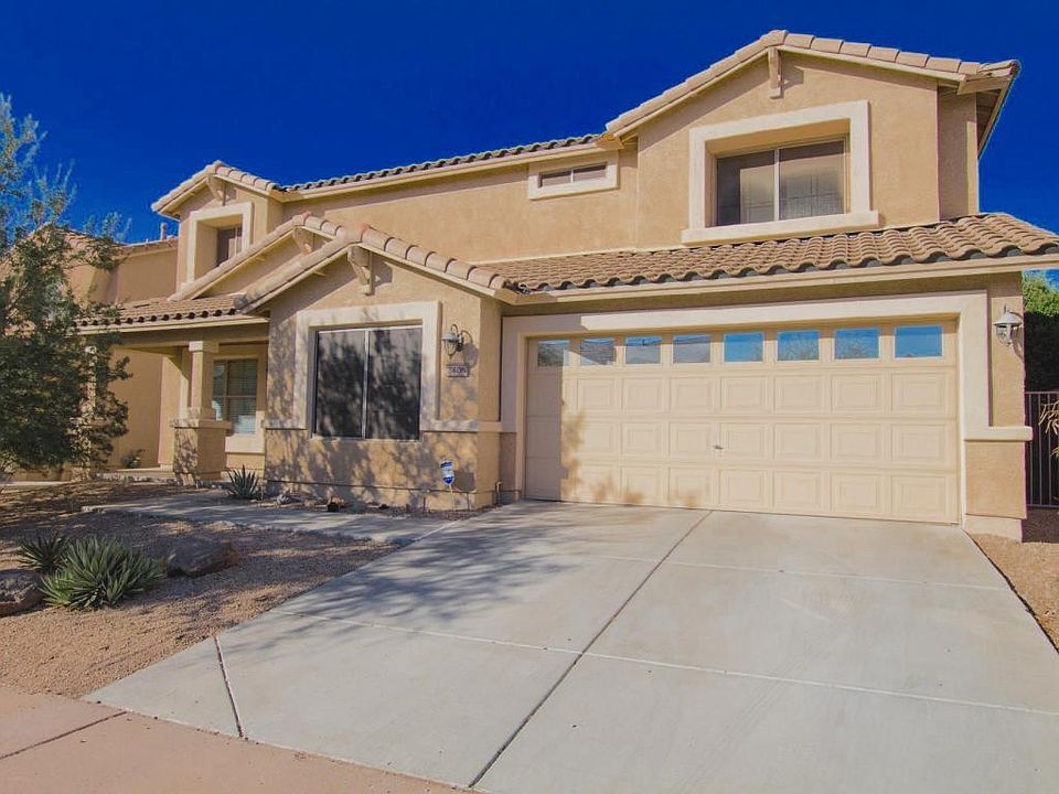 This spacious home includes 5 bedrooms, 3.5 baths, master bedroom downstairs with large bonus room attached. Stunning staircase adorns the formal entry. New kitchen with granite counters and stainless steel appliances, large formal dining and living areas, additional den/bonus room, new fixtures, fans, tile flooring, walk out balcony with stunning mountain views. HUGE LOFT! Walk-in closets in bedrooms! Extended paver patio with beautiful low maintenance grass and room for a pool! Exceptional Tramonto community features include heated pools, spas, basketball court, tennis, hiking/biking trails, and picnic area. This is the best priced home in Tramonto with a motivated Seller! Home needs some love.