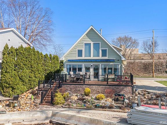 50 feet of Lakefront at Winona Lake, on the bike path near the Village of Winona. This perfect lake house is just that, perfect! Ready for use as a year round home or seasonal lake home. Enjoy life at the lake here! Homeowner made major improvements by expanding the floor plan, adding a two car garage, and a generous sized primary suite with loft! Plus plenty of extra parking at the extended drive way. New lakeside deck with awning is just perfect for sunrises, sunsets and the spectacular Independence day fireworks show! The exterior is nearly all maintenance free!