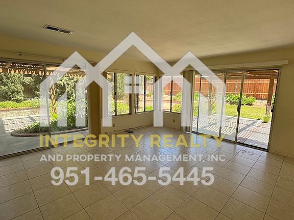 BEWARE OF SCAMS AND NEVER LEAVE PROPERTY UNSECURED UNDER ANY CIRCUMSTANCE. APPLICANT IS RESPONSIBLE FOR LEAVING PROPERTY UNSECURED. Do not sent money to anyone claiming ownership or leasing of property other than Integrity Realty and Property Management, INC. Discover your dream home in the picturesque Sunnymead Ranch neighborhood of Moreno Valley, CA! This stunning 2,220 square foot residence, built in 1986, offers a perfect blend of comfort and style. Nestled in a tranquil cul-de-sac, this property boasts 4 spacious bedrooms and 2.5 bathrooms, ensuring ample space for relaxation and entertainment. The highlight of the luxurious primary suite is the expansive walk-in closet and a dual vanity bathroom featuring a Roman tub, providing a serene retreat after a long day. HOA amenities include pool, walking, and weight room! Step outside to your private backyard oasis, complete with a charming patio perfect for hosting gatherings or enjoying peaceful evenings under the stars. The interior is designed for both functionality and elegance, featuring a convenient wet bar for entertaining guests and a skylight that floods the space with natural light. The large driveway and 3-car garage offer plenty of parking and storage options, complete with a dedicated workstation and cabinets for all your organizational needs. No pets at this time. This home is equipped with a laundry room and washer/dryer hookups, ensuring convenience at every turn. Don't miss the opportunity to make this exceptional house your own-schedule a viewing today and experience the charm of Sunnymead Ranch living! PLEASE SUBMIT ALL QUESTIONS AND SHOWING INFORMATION REQUESTS BY EMAIL. IF YOU ARE FEELING ILL, SHOWING SIGNS OF COVID, OR HAVE BEEN EXPOSED TO SOMEONE WHO RECENTLY TESTED POSITIVE FOR COVID, PLEASE DO NOT ATTEND ANY SHOWING. 12 month lease. Tenant to pay all utilities. No pets at this time.