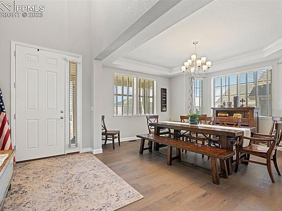 Built in 2020, this almost new home in the highly sought after Cherry Creek School District is ready for you. The Dillion II model has all the bells and whistles without the hassle and wait for a new construction Richmond home. The home has well over 4000 finished square feet, with 6 bedrooms and 5 bathrooms. The main-floor is open concept, great for entertaining. As you enter, there is a spacious dining room with coffered ceilings. It offers easy access to the kitchen through the butlers pantry. As you walk down the main hall you are met by a grand family room with high ceilings and two stories of windows. The natural light can not be matched. Located behind the family room, you will find a guest bedroom and bathroom (with shower), oversized laundry-room and mudroom. The gourmet kitchen has all stainless steel appliances, a large island, ample storage with 42" cabinets and walk in pantry. This home is made for entertaining. The backyard has a covered patio as well as a professionally landscaped and custom built pergola and gas fire pit. Not ready to call it a night? Head to the basement for a movie or games. With a fully custom wet bar, complete with concrete and chopping block counters, there is plenty of space to entertain. Your guests may never want to leave. The basement also offers a private guest room and bathroom, along with a bonus room, great for a home gym or office. When you are ready to retire for the evening, head upstairs to your primary retreat and ensuite. The second floor abodes a spacious landing and three additional bedrooms and two more bathrooms. the two front guest rooms have mountain views! Location is key when buying a home and this oasis does not disappoint. Just steps away from Southlands, you are close to shopping, entertainment and E470. This home has everything and is ready for you to call it home.