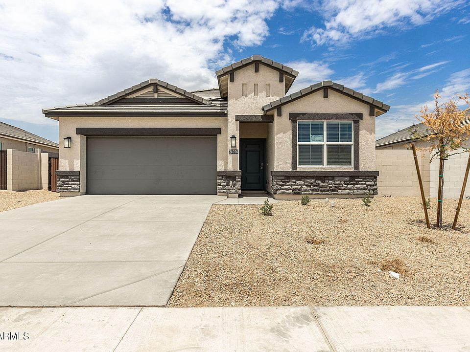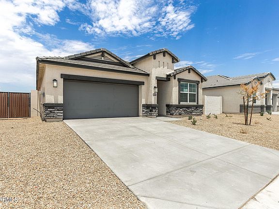 Need extra storage space? How about a 3 Car tandem garage! 3 CAR GARAGE! Brand new construction, October move-in!. Our premier community located in Buckeye of Desert Moon Estates. Dove floor plan includes 3 bedrooms and 2 baths, 1601 square feet. The upgraded White shaker style Cabinets add a custom feel to your gourmet kitchen, plus Quartz kitchen counter tops, upgraded stainless steel appliances, range/oven (convection/self clean), microwave and dishwasher. Additional upgraded features include 18 x 18 inch tile everywhere but bedrooms, upgrade carpet in br's. To complete package, Window blinds are included t/o with verticals on Sliding Glass Door. Pictures are of other models.