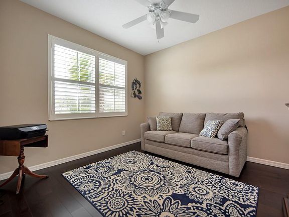A practically brand new home in beautiful River Plantation is ready for its new owner! Built in 2016 this pristine 3 BR + Den, 2 BA/3 Car garage home on a corner lot is ready to move in to. Youâll walk into the home through the beautiful glass front door onto the neutral tiled Foyer with a Den/Office on the left that has two glass doors for privacy, wood flooring and plantation shutters. This room, currently a Den can be used for an office and/or guest bedroom. Youâll continue to walk into the open floorplan, noticing the high ceilings and will immediately be impressed with the Kitchen with Breakfast Bar, granite counter tops, wood cabinetry and stainless appliances. The lucky chef will have more than enough storage and counter prep space. Just beyond are the Dining and Living Areas making entertaining or family gatherings so easy! At the front of the home youâll find the two guest bedrooms with guest bathroom-also with granite, wood vanities and tub and shower. The private Master Suite at the rear of the home has a large Master Bedroom, HUGE Master Closet, and spa-like Master Bath with double vanities, walk-in shower and garden tub. River Plantation is a community located close to the Ft Hamer Bridge, Excellent Schools, shopping, I-75 and much, much more. Community Pool, Basketball and Tennis courts are right in your neighborhood. Hurry-you want to see this great home. Property being sold As-Is with Right to Inspect. All room sizes are approximate and Buyer to verify.