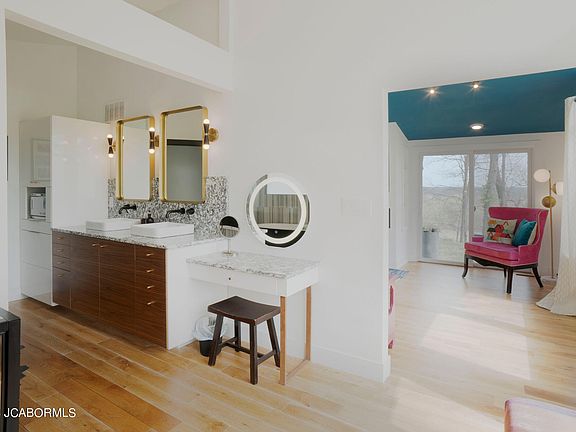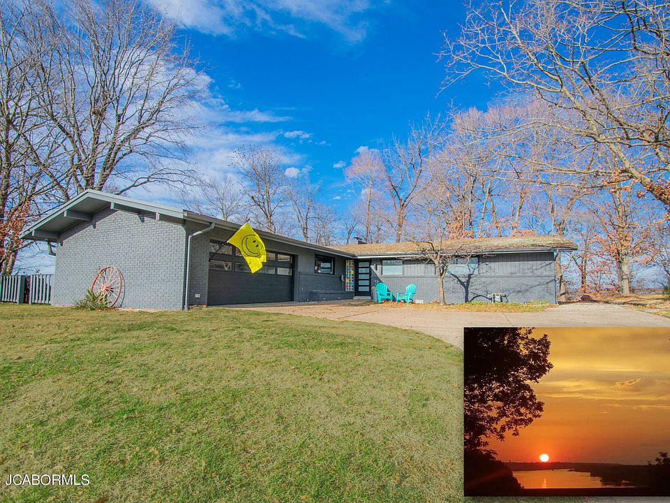 Welcome home to this completely remodeled mid-century modern ranch perched on the bluff overlooking the MISSOURI RIVER. Instantly fall in love with floor to ceiling windows drawing your attention to the panoramic views & filling the house with tons of natural light. Framed by gorgeous wood ceilings and floors, the open living space offers stylish lighting and a super chic fireplace. The sleek, modern kitchen boasts top-of-the-line appliances, designer backsplash and a stunning quartz island. Cuddle up by the fireplace of the master suite complete with a spacious dressing room/closet and spa-like master bath with an oversized tile shower room with soaking tub. Enjoy the city's fireworks from your patio with clear views to the BRIDGE. With almost every inch of this house updated and customized, this is truly an artistic retreat. Owners are willing to sell all the furnishings inside, making this unique home a complete, turnkey package.