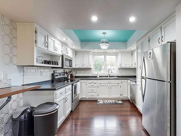 Beautiful 4 bed 2 bath home in a great South Fargo neighborhood! Fall in love with the updated kitchen which has stainless steel appliances, white cabinets, and tile back splash. The patio door in the dining room leads out to and amazing backyard with 2 tiered maintenance free deck great for entertaining. Two nice sized bedrooms on the upper level including a large master with updated Hollywood bath. Downstairs are 2 more nice sized bedrooms, large family room with Gas fireplace, and a 3/4 bath. This home has so many amazing features including newer flooring throughout, steel siding, newer windows, and storage shed.