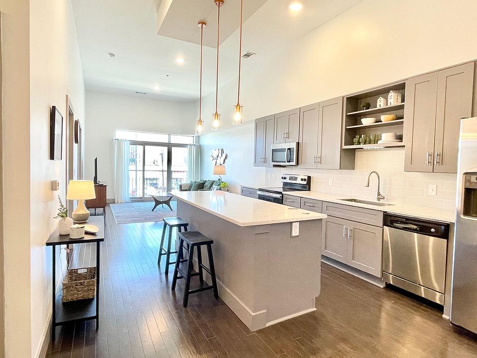 Rare second floor unit built in 2017 with 12' ceilings throughout. Spacious 1 bedroom, 1 bath with large flex space that is great for home office, formal dining or workout room. Upgraded finishes include quartz countertops, stainless steel appliances, soft close drawers and cabinets, washer/dryer in unit, hardwood floors and lots of natural light throughout. Convenient, easy access to the Shops at Green Hills and the vibrant and trendy shopping, dining and entertainment of Hillsboro Village, Melrose and the West End Row. Close to major employers and schools. Nearby Route 31 and I-65 provide easy access to downtown Nashville and the greater Tennessee area. This is a non-smoking property.