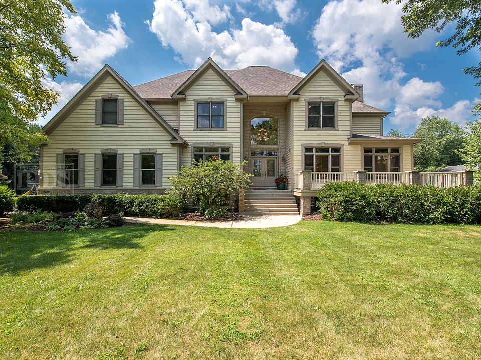 Welcome to river living at its best! This gorgeous home combines class with a laid-back country lifestyle! So many special features that it's hard to know where to start! So let's begin with the river: deeded interest in the lot across the street w/120 ft of river frontage, boat dock, screened-house for parties & a sandy beach! Continuing outside, this home has an in-ground heated salt-water pool, maint. free deck & covered patio area for alfresco dining, 3 car gar w/14 ft ceilings & almost 10 ft doors to accommodate a boat, separate 1 car gar can be used as car storage or cabana for the pool. Coming inside, freshly repainted in today's colors, the spacious 2-story foyer welcomes you into the open floor plan, tall windows everywhere, multiple views of the river, 1st & 2nd flr laundry rms, huge master suite, beautifully finished lower level that feels like an entire home w/full kitchen, family rm w/fireplace, office & bedroom w/bath. Outstanding Prairie Grove & Prairie Ridge schools!
