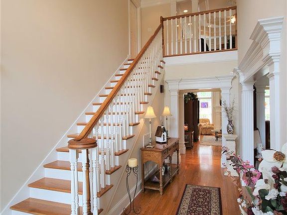 Stunning Southern Living home plan in Crown Pointe!! This exquisitely detailed custom home overlooks the 14th tee of Burningtree Valley Golf Course. Picturesque setting at end of a cul-de-sac for privacy and beauty. Loads of Southern Charm in this plan by nationally known architect Frank Betz. Inside, you'll find layers of custom mouldings, volume ceilings, hardwood and granite counters. Meticulously maintained and sparkling clean home is MOVE IN READY! Luxurious first floor master suite w/ trey ceiling is enormous. Vaulted ceiling in adjoining spa bath. Upstairs the loft is as nice as many greatrooms! 2 car garage + 4 parking pads for a total of 6 cars, perfect for family with teens!
