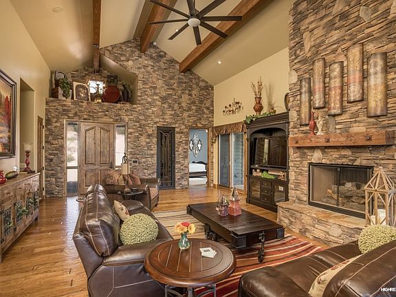 Casual mountain elegance at its finest in this home in the acclaimed Chaparral Pines golf community! You feel a sense of arrival as you come to the home, nestled privately at the end of a cul de sac street in the middle of the community - the level driveway and large 3-car garage are easy to navigate. Upon entry to this well-appointed home, you are greeted by an impressive wall of stone beautifully framing the front door and a chilled wine cellar. The perfect light, from the windows and wall of sliding glass to the deck, grace the room. The Great Room, with its massive floor-to-ceiling stone fireplace, wood floors and vaulted ceilings with wood beams, is inspiring. Additional living space outside provides the peacefulness of nature with panoramic views in every direction with an expansive covered living area with fireplace and plenty of space for dining as well. No attention to detail is spared in the gourmet kitchen, with touch faucets, stainless steel Dacor appliances, tumbled edged granite and stone backsplash and island accents, as well as custom cabinets and pendant lighting. The main-level offers you the comforts of an expansive master bedroom and bath, including separate soaking tub and snail shower, spacious closet as well and an office/living area and the privacy of a split floor plan offering a guest bedroom with en suite all on the main level. Downstairs is the perfect In-Law Quarters for guests, featuring a living area, kitchenette, desk nook and bedroom suite. The suite also has its own separate entrance with a private patio to enjoy the whisper of the wind in the massive pines and the promise of fresh air and the beauty of nature. The large 3-car garage offers room for your vehicles, golf cart and plenty of space for extras. This home offers the space, storage and livability of a primary residence and the tranquility, beauty and mountain home living at its finest of a second home, come take advantage of everything it has to offer now!