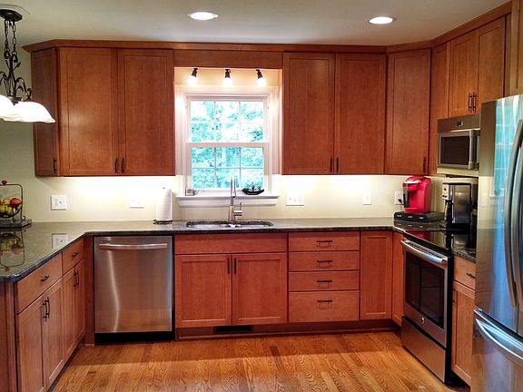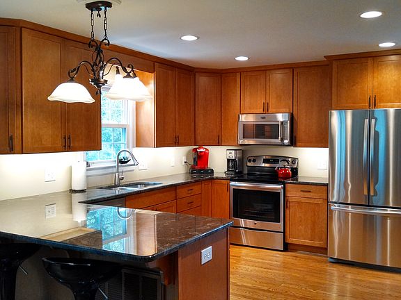 This beautiful home offers a one car attached garage and a large detached 2 car garage with plenty of storage overhead! There are many features that include: hardwood flooring on the main level and upstairs, the main level hardwood floors were just refinished, newer replacement windows, all new doors, the main level heat pump is around 5 years old, recently painted inside, updated kitchen with beautiful new cabinetry, granite counter-tops and stainless steel appliances, resurfaced paved drive and the detached garage was added around 5 years ago! This home offers 2 wood burning fireplaces, one in the living room and one in the basement! The master bedroom offers a separate large sitting room, a walk-in closet with custom built-in shelving and an ensuite bathroom with granite counter-tops, a whirlpool tub, and a walk-in shower. The basement is finished with a den, full bathroom, bedroom and a one car garage!
