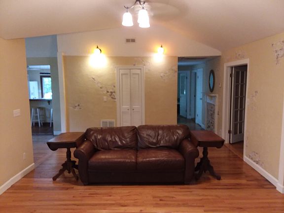 The home features an open floor plan with front entrance into optional living room or dining room with fireplace. It flows straight into a bar area and huge kitchen with tile from the movie "Midnight in the Garden of Good and Evil." Open floor plan continues into other optional dining area or 23'x15' living room space with vaulted ceilings and coat closet. Off this space is the front master/guest suite (new addition) and French doors opening to the middle bedroom which features a cedar lined closet. A short hallway with faux brick filled in brick fireplace leads to the main extra-large bathroom with custom double vanity, walk-in shower, and relaxing claw foot bathtub that is from the movie, "GI Jane" with Demi Moore. Across the hall is a linen closet and the back/master bedroom with carpet (new 2019), 2 door walk-in closet, and French door opening into large screened in porch. At the end of the hall is a tile floored bonus / mud/ exercise / office space that has another exterior glass door. Off this bonus room is the laundry room with utility sink with plumbing in place for toilet.