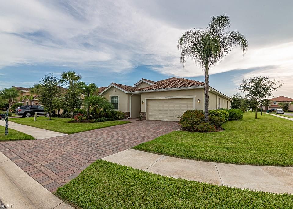 This beautiful 4 bedroom, 3 bathroom single family home features a 2-car attached garage, large lanai, and the landscaped area outside for the view. The interior features granite countertops w/ island, open kitchen floor plan, window treatments on all windows, tile in the living room, dining room and kitchen. This gated community offers a community pool, spa, playground, covered picnic areas, and clubhouse. This amazing single-family home is just minutes from Corkscrew Elementary, Middle School, Palmetto Ridge HS, and I-75.