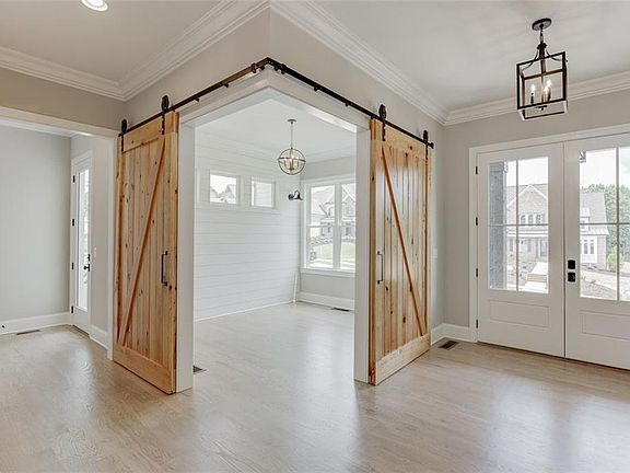 New Construction in gated community within City of Buford school district! Farmhouse style w/ brick & board-n-batten. 3-Separate garages. Covered rear porch w/ fireplace! Open concept floor plan w/ spacious kitchen with custom cabinets, Kitchen-Aid appliances, walk-in pantry & huge work island; Family Room w/ FP & built-in bookcases; Guest bed w/ private full bath on main. Additional office on main w/ corner barn door. Powder Room & Mud Room off Garage. Oversized master suite & luxurious master bath w/ separate vanities, unique tiled shower, free-standing tub & Enormous walk-in closet! All bedrooms have private baths and walk-in closets. Full daylight basement with 10 walls. Foundation has been started and framing to start soon. Pictures are from a sample plan and will not be exact as the details can change from home to home.
