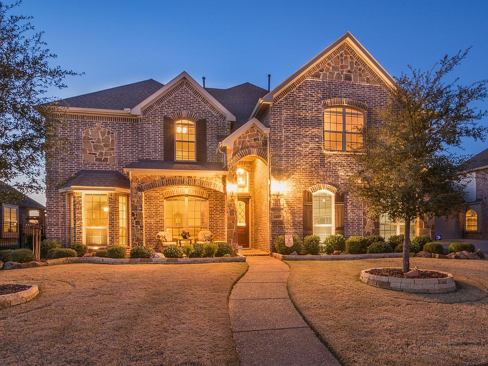 Stunning UPGRADED 5 bed, 4 bath, 3 car home on an oversized, premium lot! 1st floor master bedroom, home office and wide plank wood flooring. Granite island kitchen with architectural arches and pendant lighting, 5 burner gas range with pot filler and double ovens. 2nd floor boasts 4 bedrooms plus a game room and separate media room with granite mini bar and mini fridge! Large walk in closets! Oversized covered patio with stone fireplace