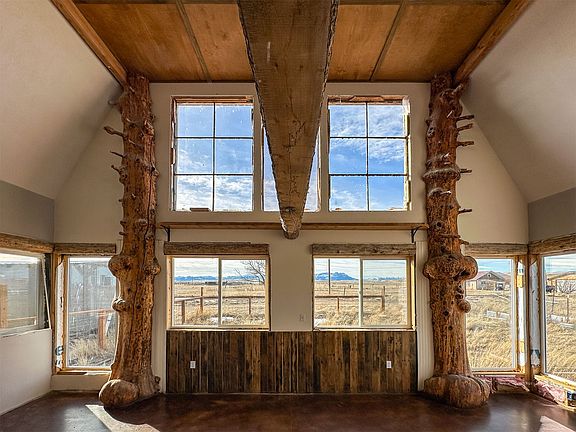 Come find a unique and special offering in Augusta/Gilman, MT. This a newly-constructed, mostly-finished home on EIGHT separate and divided lots. The home has great style with handsome exposed logs that are also structural. The kitchen has high-end cabinets, concrete floors and countertops. The bathroom on the main floor is a gorgeous tile walk-in shower with a separate clawfoot tub. The bathroom on the second floor is slated to be similar. If you are looking for unsurpassed views of The Rocky Mountain Front, you have them here, both from the Great Room and the open, second floor loft. The builder had a keen eye for rustic and modern and it fits into the surrounding landscape well. The 8 lots are already divided, so could be sold or developed separately which has tremendous value. Two sheds and a newer washer and dryer convey. This is on the edge of Augusta, MT in the historic town of Gilman. Radiant heat floors. Augusta is a charming small town that attracts tourists, recreationalists, hikers, fisher men/women, hunters and locals from nearby towns seeking out activities. Augusta-itself, has restaurants, bars, a motel, RV Park, a grocery, service station, library and assorted shopping. Tankless water heater. Metal roof. NO COVENANTS and NO ZONING, so bring your business, horses and/or livestock. Partly fenced. Buyers who need a loan should visit with their lenders about a loan that allows for finishing the home. Won't go traditional VA, but may be a candidate for a 203K FHA rehab loan or a construction loan. Sellers can't seller finance. Sellers will not complete or make any repairs to the property. Mirror in main floor bathroom is excluded from sale.