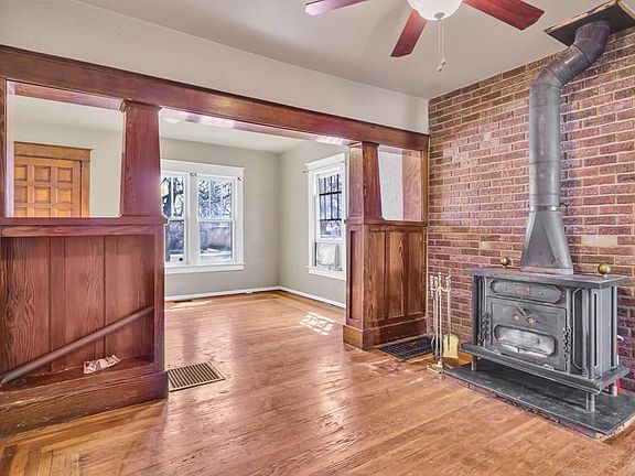 3 bedroom/1 bathroom home. Living room and dining area have hardwood flooring and a wood burning stove too keep things cozy. Kitchen includes appliances and lots of cabinets. 2 main level bedrooms and upper level bedroom. Unfinished basement is a great place for additional storage. Fully fenced backyard includes planters for your super gardening. Off street parking with long drive way to detached 1 car garage.