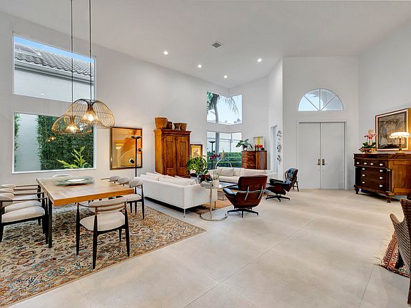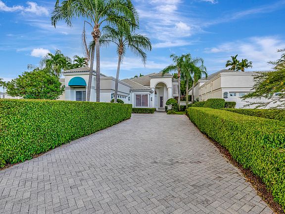 Move right in to this extraordinary renovated one story, 3 bedroom, 3.5 bath home in the highly sought after village of Fairway Lake in Broken Sound. Features include: Solar Heaters for the pool & water, electric shades, soaring ceilings, split bedrooms, open floor plan, 4X4 porcelain tile floors, contemporary custom built-in bar and impact glass (partial). The gourmet kitchen is open to the family room with quartz countertops, stainless appliances, a center island & 3 dishwashers. The bright primary suite features his/her baths with frameless showers, floating vanities and 2 custom walk in closets. Sip your morning coffee under your covered patio & enjoy plenty of sun by the private pool surrounded by Florida palms and serene landscaping. 2 A/C's 2020, roof 2006. Mandatory membership