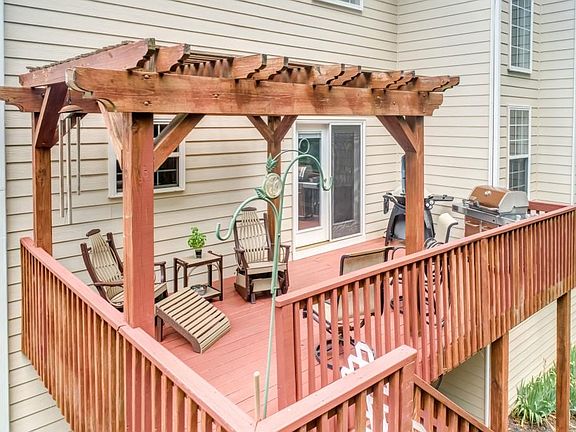 Traditional Brick Beauty! New Paint Inside & Out, New Walnut Hardwoods, an Open Concept Floorplan w/a 2 Story Living & Marble FP! The Kitchen is perfect for entertaining w/a New Stainless Steel Dishwasher & Microwave! Head upstairs on New Plush Carpet to find a Spacious Master w/Flex Space for a potential Nursery, Office, or Reading Area. Partially Finished Bsmt w/a Full Bath to easily finish! Enjoy Outdoor Living on the Large Deck overlooking Protected Green Space & Electric Fencing for pets! A Cul-de-sac Lot & fantastic Neighborhood Amenities make this home perfect!