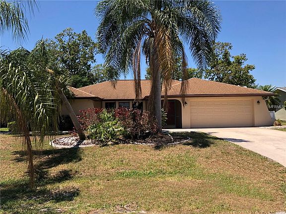 Impressive 3 Bedroom, 2 Bathroom home with attached 2 Car Garage located in the desirable deed restricted community of DEEP CREEK. County water and sewer. NOT in a flood zone. This light and bright home offers a spacious open and split bedroom floor plan with Great Room, Dining Area, Family Room, eat in Kitchen with granite counters, closet pantry and pass thru to lanai, Inside Laundry. The Master bedroom suite features TWO walk in closets and private bathroom with dual sinks, tub and separate walk in shower. There are two guest bedrooms with walk in closets and the guest bathroom has a shower and is also a POOL BATH. Your living space extends to the caged lanai and heated swimming pool. There is a huge covered lanai as well as open deck for sunbathing. Other features include double door entry, screened front entry, cathedral ceiling and skylight in family room, gutters, irrigation system underground utilities. NEW A/C 2018. NEW carpet in the bedrooms. NEW cabinets and tile floor in Master bathroom. NEW pool cage screens. This home is in a quiet neighborhood yet minutes from golf, shopping, dining, I-75 and entertainment. Short drive to medical care, waterfront parks, fishing piers and boat ramps. Easy drive to Gulf beaches.