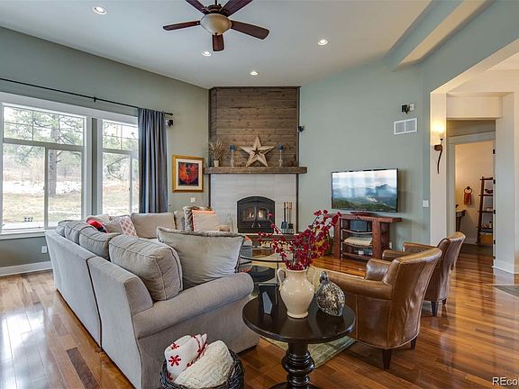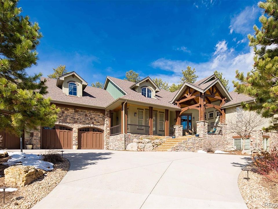 Luxurious Colorado Contemporary Mountain Craftsman style home on a PRIVATE WOODED LOT! Exquisite detail throughout with views of the forest and meadow in every room. ** Better than new condition with MAIN FLOOR MASTER** 5-bed, 6-bath home with amazing picture window views of the Ponderosa Pine Forest that surround this home. Completely remodeled in 2019; features new kitchen, new master bedroom wing, fully finished basement including theatre, guest suite, 2 powder rooms, bar & wine cellar. In the Kitchen you will find beautiful white craftsman cabinetry and molding detail that can be found throughout the entire house. HUGE entertainment-oriented chef's kitchen that leads to an expansive stamped concrete and stone patio in the front and back yards! The Luxurious new master en-suite boasts beautiful built-ins, patio access, expansive windows and views with a double sided fireplace. The 5-piece bath is complete with his and hers sink vanities, enormous soaking tub, stone shower and a brand-new custom closet. *** NO EXPENSE SPARED ON THE WORKMANSHIP DETAILS IN THIS HOME! ** 2019 newly finished basement with an additional guest suite**Large bar with copper counters, theatre, wine cellar and great room with fireplace and walk out patio access. **MAN CAVE READY WITH EXPANSIVE GARAGE/WORKSHOP & QUINTESSENTIAL COLORADO BAR. ** Don't miss the opportunity to own one of Colorado's most desired home styles in the beautiful and coveted Escavera neighborhood featuring scenic walking trails, tennis courts, and parks all 5 with CONVENIENT ACCESS TO THE CHARMING & HISTORIC OLD DOWNTOWN OF CASTLE ROCK!