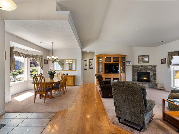 Ready to retire or just relax and play?? Scale down on your landscaping chores and live in an active community without any of the maintenance. Two pools, Two Clubhouses, and tons of activities create a welcome atmosphere where it's easy to meet new people when you're new to town. This home is the answer to enjoying what really matters in life! Beautiful home is the newest home in Sun Oaks Community, built in 2005 and a one owner home. Split floor plan with Primary En-Suite with oversized walk in closet and separate office on one side, formal dining area and living space with cozy rock fireplace and vaulted ceilings makes this home feel spacious and airy. Beautiful kitchen with granite countertops. Interior laundry room and two extra bedrooms for your guests on the other side of the home give the privacy you desire. Outside is a decorative tri-level patio with peek a boo views of the golf course. Location is everything...near medical services, I-5, and St. Mary's School.