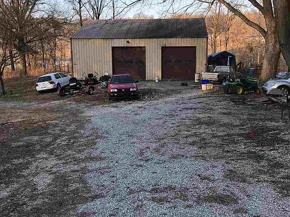 In the perfect setting between fields, hills and many beautiful mature trees (chestnut, pecan, walnut, oak, maple, paw paw and magnolia to mention a few), this move in ready home offers so much! 3 acres of quiet country living with convenience of great fiber optic high speed internet! In addition to the updated kitchen and bathroom, the original hardwood floors have been sanded and refinished this last June! The water heater is only a year old! And the siding, windows (house and garage) and doors were just updated 3 years ago. There is plenty of space to work on crafts, cars or enjoy company throughout the home and garage. Are you looking for a 40x40 garage with a 6000 lb 2 post car lift with 6" concrete floors and embedded chains? This property has it! Also included in the garage is an office/workshop, 100 amp service, attic storage and an 80 gallon industrial air compressor with 40 foot 220 cord. This home also has a storm shelter in the basement. The basement is very usable for storage - in fact the current owner used it as an office in the past. Contact your Realtor today to schedule your appointment today!