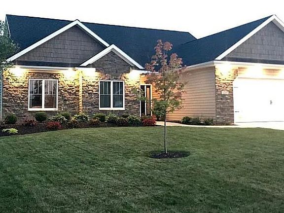 Beautiful custom-built ranch home in the Meadows of Cross Creek. Well maintained, this home features an open floor plan, large pantry in the kitchen, 9 foot ceilings throughout, custom maple raised panel cabinetry with dovetail and soft close drawers in the kitchen, stainless steel kitchen appliances, wide painted trim, beautiful direct-vent gas fireplace in the great room with mosaic glass tile surround. Extra-wide crown molding in the great room, foyer, kitchen and dining room. 4 zone speaker system INCLUDING tuner so it is ready for you to enjoy. Master bath features a walk-in shower. Exterior can lights highlight the beautiful stone and shaker-shingle exterior, professional landscaping, luxury vinyl plank flooring in the foyer, bathroom, laundry room, kitchen, and dining room. Recently freshly painted throughout. Partial attic storage with pull-down stairs leading to abundant storage. Fully finished garage with wireless keypad to operate overhead garage door. 400 Series Anderson windows, large backyard with 15x14 concrete patio including outdoor speakers. New concrete area with 8-person hot tub. Corner Lot, and expanded patio
