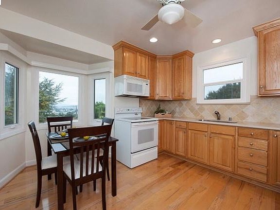 Wonderful indoor and outdoor spaces plus North Bay and Marin views. Sheltered front garden with porch and deck. Large level backyard lawns and terraced side yard. Upgraded kitchen, bath, elec svc, newly installed dual pane windows, Trex decking, termite work. Sewer compliant. Refinished hardwood floors throughout.