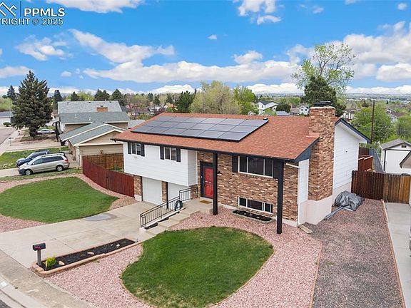 Where Comfort Meets Convenience! This beautifully updated 3-bedroom, 2-bathroom home in the heart of Colorado Springs offers nearly 2,000 square feet of versatile living space on a spacious 9,900 sqft lot. From the moment you arrive, you’ll notice the huge lot, oversized 2-car garage, and dedicated RV parking, perfect for all your Colorado adventures. Step inside to discover modern upgrades throughout, including new fixtures, fresh interior paint, and updated flooring in the kitchen and dining areas. The kitchen boasts granite countertops, stainless steel appliances, and direct access to the back deck, ideal for outdoor entertaining. A cozy fireplace warms the living room, creating the perfect gathering spot. The primary suite includes an attached bathroom with a fully remodeled ceramic tile shower and flooring. Two additional bedrooms upstairs provide ample space for guests or home office needs. The second bathroom fully remodeled, also shines with elegant tilework. Downstairs, the finished basement features a second living room with fireplace, a spacious flex room being used as a bedroom, and a massive laundry room with access to the garage. The oversized garage is a dream for hobbyists, offering a workshop area, storage galore, a wash sink, and a new insulated door with a service entry to the backyard. Enjoy added perks like central A/C, fully owned solar panels, and a fully fenced backyard with a storage shed – all tucked in a quiet, established neighborhood with easy access to military bases, schools, and downtown. Don’t miss your chance to own this move-in-ready gem with room for everything – and everyone.