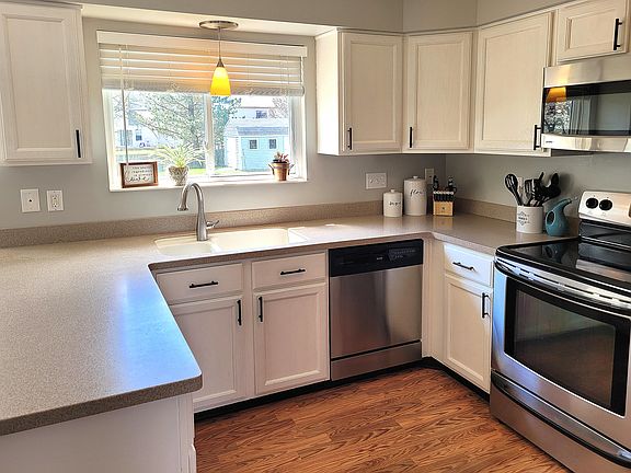 - Features: Laminate Flooring, Eat-in Kitchen, Pantry, Wood Cabinets, Solid Surface Counters