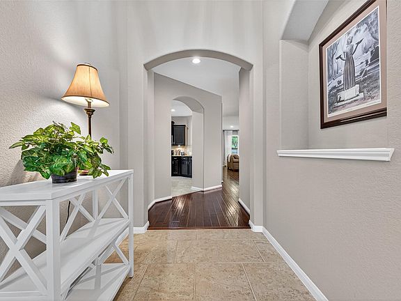 Gorgeous D.R. Horton one-story in Graystone Hills! This 3-bedroom, 2.5 bath home boasts an inviting brick exterior and thoughtful upgrades throughout including a Whole House Generator! The open-concept design features a spacious family room with fireplace, hand-scraped hardwood floors (no carpet in the house), and elegant raised ceilings accented with arches. The kitchen offers granite counters, breakfast bar, and a cozy Breakfast Dining nook, plus a separate formal Dining area. Additional highlights include an upgraded iron/wood front door, stylish lighting, and enhanced landscaping. The split floor plan ensures privacy, while the covered patio and fenced backyard with 2 access gates, is perfect for entertaining. Enjoy a two-car garage with an extended side area for a possible work area. The double-wide driveway make multiple parking so convenient. Zoned to highly rated Conroe ISD schools, with community pool, trails, and parks. Conveniently located near I-45, Shopping, Dining.