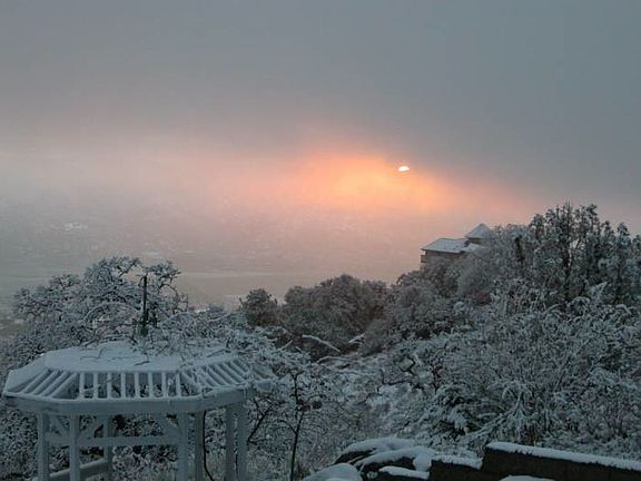 You enter via the circular driveway to a formal entrance. Enter the king-size living room with a floor-to-ceiling stone fireplace! The adjoining sun/reading room opens to a secluded deck. To the right of the entrance is a powder room and a formal dining room. A few steps further brings you into the island kitchen with lots of storage and a sunny breakfast area. The large family/media room comes with a great bar. The laundry room, on the same level, connects with the 4-car garage with ample space for the workshop. A sweeping staircase commands the center of the home. It leads upstairs to the master suite with bath and walk-in closet and its own deck to take in breathtaking sunrises and sunsets. Down the hall are two more bedrooms with a full bath to share as well as a large space for storage. Downstairs is a office, bath and bedroom. The entire main level has a deck leading to expansive patios and rock gardens. Built by master builder Keith Clow in 1990.