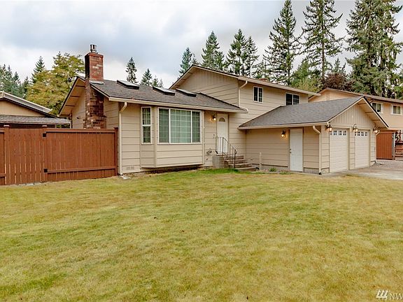 Welcome home! Updated 4 bedrm / 2.25 bath tri-evel home situated on a large corner lot & cul de sac. Open floor plan w/ vaulted ceilings on main level. Kitchen w/ granite counters & s/s appliances. Sunken living rm w/ gas fp. Master bedrm upstairs w/ private 3/4 bath. 2 more bedrooms & full bath. Downstairs has 4th bedrm w/ private 1/2 bath & large family rm w/ gas fp & french doors leading to large fully fenced back yard. Newer roof. Newer gas furnace & water heater. 2 car garage. Tahoma SD.