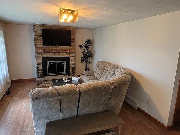 Very nicely remodeled interior. Kitchen has built in range, oven, counter tops, sink and backsplash. Remodeled full bath on main floor. Freshly painted interior. New roof 2010. Ceiling fans throughout. Shower in basement. Additional 25x32 garage with eight and twelve foot doors. Insulated and heated with wood burning stove. Also has attached 9x15 third stall garage. Great edge of town location.