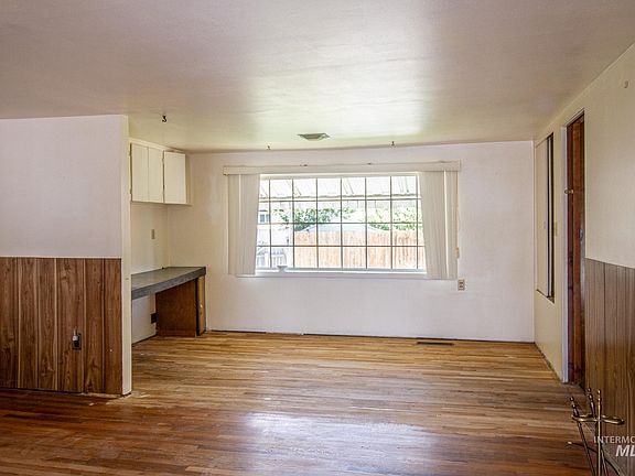 This home sits on a large corner lot in Burley near all city amenities. Home features a main floor with 2 bedrooms with a bath, hardwood floors, and unique kitchen arrangement. Downstairs hosts a bathroom, one bedroom and a "whatever" room. (Great place for kids). Shed is big enough for tools and a work bench. Several apple trees for some good fall applesauce maybe? Extra parking area on the north side and circle drive in front...come take a look!