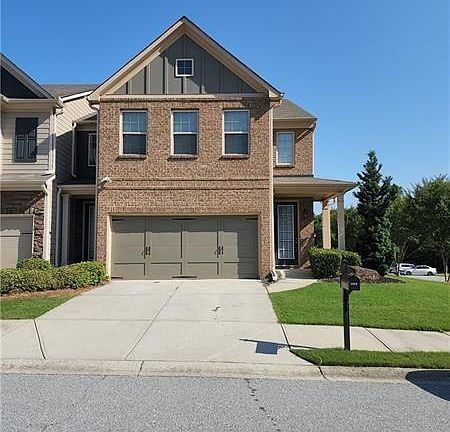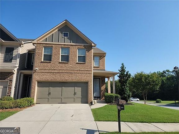 Available now, this stunning 3 bedroom, 2.5 bath end unit townhome offers exceptional upgrades, abundant natural light, and an unbeatable location. Brand-new wide plank hardwood flooring through the main level beginning in the foyer and extending throughout the living room, kitchen, dining room and up the stairway, open loft, hallways, and primary suite. High ceilings, extensive trim work, wood-wrapped columns, and a built-in bookcase beside the cozy fireplace create a warm and inviting atmosphere. The chef's kitchen features granite countertops, a spacious island, walk in pantry, upgraded cabinetry, stainless steel appliances, and a gas stove... perfect for cooking and entertaining! Neutral paint tones and 2" wood blinds throughout offer a timeless, move in-ready look. Iron spindles and wood banisters/handrail lead up to the massive hardwood loft area which can be utilized as a media room, home office, billiards room or a second lounge area. The luxurious primary suite is joined by two spacious additional bedrooms, one with a designer feature wall. All bedrooms are well-lit and comfortable, ideal for family and guests. Enjoy outdoor living with a landscaped front, side, and backyard, level grassy areas, a patio, and a BBQ space. The attached 2-car garage includes an epoxied floor, overhead storage, and built-in cabinets for a workshop. Located in a desirable swim community, you're just minutes from the Mall of Georgia, Lake Lanier Islands & Water Park with easy access to I-85 and I-985. Landscaping and trash service are included in rent. Copyright Georgia MLS. All rights reserved. Information is deemed reliable but not guaranteed.