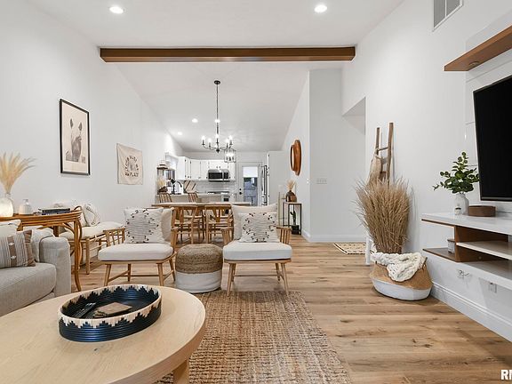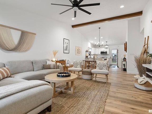 Expect to be impressed with this completely renovated 2 bedroom, 2 bath attached single family home in popular Koke Mill West on Springfield’s westside! A stones throw to shopping, dining and coffee shops. Beautifully updated top to bottom including luxury vinyl wide plank flooring throughout, wall treatment with entertainment center, new timeless white quartz countertops with subway tile backsplash, all new SS appliances, both baths completely redone with walk-in shower in primary suite. Generous sizes guest bedroom. All new current light fixtures. Fenced lawn and 2 car garage! A unique opportunity in Springfield to purchase completely furnished down to the plates, linens and grill ($10,000 separate bill of sale).