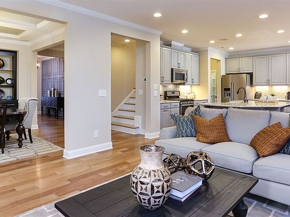 The heart of the Galvani features a stunning corner kitchen in the lively design, which is expandable from 3,418 to 3,456 square feet. The downstairs of the five-bedroom, three- to four-bath floor plan also offers a private study, formal dining room, and a guest suite with a full bath. The kitchen, with maple cabinetry and Whirlpool appliances, features an enlarged granite island overlooking the breakfast nook, which opens to a covered patio or screened-in porch. A porch/patio extension may be added off the casual dining area. Adjacent to the kitchen is a spacious Great Room, with a fireplace optional. The second floor of the Galvani boasts a loft, game room, and sumptuous owners suite, with a sitting-room retreat and spa-style bath, featuring a garden tub, tiled shower, cultured marble vanities, and two generous walk-in closets.