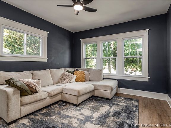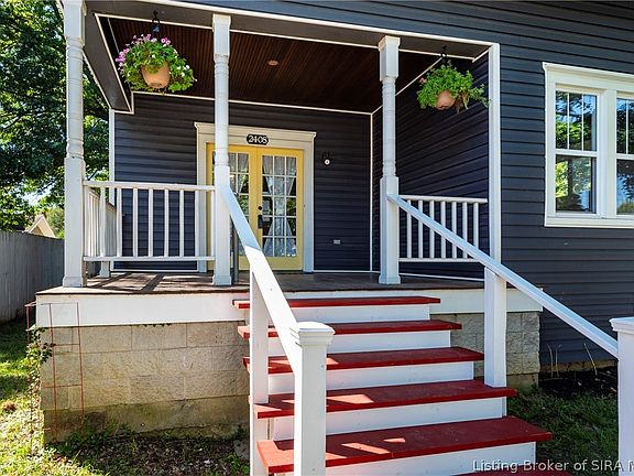 Recently updated home located in uptown New Albany. Close proximity to dining, shopping, and entertainment. This two-story home is sure to impress! Large front covered deck features composite decking with double glass entry doors leading directly into 10ft raised ceilings. Great room boasts a decorative fireplace and an abundance of natural light from the many windows located throughout living room and kitchen. Kitchen is updated with white cabinetry, countertops, tile backsplash, and stainless appliances. This home features a separate room that can be used as a family room or dining room for gatherings and provides a conveniently located half bath. Second level does not disappoint continuing with raised ceilings, three bedrooms, and laundry space. Full bathroom is located adjacent to bedrooms, and features tile-inlay shower surround, vanity, and LVP flooring. Unfinished basement provides plenty of room for storage, workshop, or additional space to grow in to later. Small, easily manageable yard, off street parking. Home features newer AC, Furnace, Windows, Siding, Soffit and Gutters!