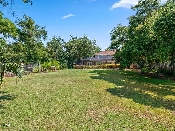 As you enter the expansive private drive off of the quiet cul-de-sac of this low-density community just 600' from St. Andrews Bay, you'll arrive to a lovely home surrounded by mature trees and a spacious nearly .6 acre homesite. This home features a two-car garage, an in-ground gunite pool with a screened enclosure, a hot tub and a lovely back yard perfect for the kids to play, hosting events or to expand your hobbies!