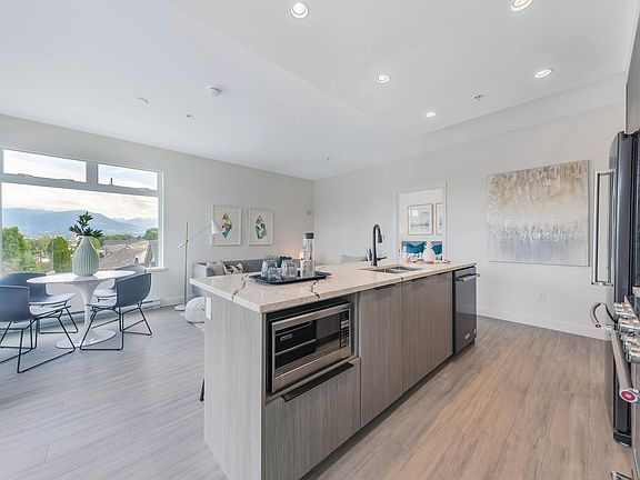 Welcome to ELLA by Trillium Projects! Located at the corner of Grant & Nanaimo, this brand new 2 bed 2 bath (plus flex) corner unit boasts soaring 9'ceilings & tons of light. Be the first to live in this open concept, family-friendly layout w/black S/S appliances, quartz countertops, gas stove & HUGE island. Entertain easily w/bright living/dining & flex space has big corner windows perfect 'work-from-home'. Primary bed fits king & walk-in closet. Step out onto the large balcony & enjoy expansive mountain views. Amenities feature co-working area, indoor/outdoor lounge & terrace, pet/car/bike wash. Ground level shops feat Erin Ireland's To Live For Bakery & more! Minutes away from schools, parks & Commercial Drive restaurants & shopping. Open House: Saturday, June 25th, 2-4PM!