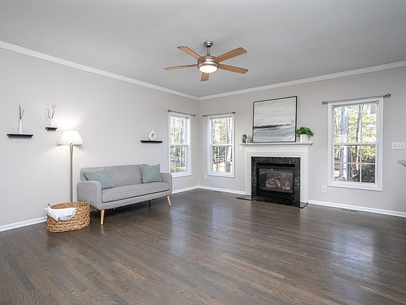 Don't miss your chance to call this stunning 4-bedroom, 2.5-bath home your own. NEW WINDOWS 2023! ROOF AND GUTTERS UPDATED 2017, NEW HVAC 2018 & 2023! From the moment you step into the grand cathedral foyer with gleaming hardwood floors, you'll feel the warmth and charm of a space that has been meticulously cared for and lovingly updated. Nestled in an unbeatable location, this home offers both elegance and convenience. Arched doorways invite you into a sunlit formal dining room and a cozy, private study—perfect for intimate gatherings or quiet moments of focus. The spacious living room, bathed in natural light, features a welcoming fireplace that sets the stage for cozy nights and memorable conversations. The chef's kitchen is a dream come true, showcasing exquisite granite countertops, a custom tile backsplash, a generous island, and a cheerful breakfast nook. With ample storage in the pantry, it's as functional as it is beautiful—a space where culinary creativity thrives. The luxurious primary suite is your personal retreat, offering a walk-in closet and an exquisite, spa-like bathroom. Relax in the soaking tub framed by elegant wainscoting, or indulge in the floor-to-ceiling tiled walk-in shower. Dual vanities add a touch of sophistication and practicality. Two spacious bedrooms and a well-appointed bath provide plenty of room, while the versatile bonus room serves as a perfect fourth bedroom, playroom, or home office. Step outside to your own private oasis. The screened-in porch opens to a sprawling back deck, a charming paver patio, and a fully fenced, wooded yard. Whether hosting lively gatherings or savoring the serenity of nature, this outdoor haven is an entertainer's dream. Situated in the sought-after Crooked Creek community, you'll enjoy access to multiple playgrounds, open spaces, and a cart path connecting you to a host of additional amenities. Plus, with the newly opened I-540 just moments away, convenience has never looked so good. The NEW Hilltop Needmore Town Park Community Center is set to open Feb, 4th and is less than 1.5 miles away! Your dream home awaits—schedule a tour today and experience the magic for yourself!