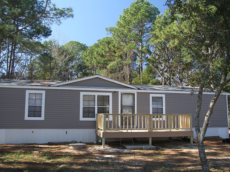 You're gonna love this place! This home is located in the North Grand Lagoon area, with easy access to Front Beach Road, beaches & St. Andrews State Park. This mobile home was placed and then immediately updated - so don't let the year built fool you. New kitchen cabinets, new counter tops & backsplash, tiled shower in the master bath, brand new hardwood floors in the master, living room, dining, eat-in kitchen, & family room. New subfloors were installed, the lot was pretty much cleared of tall pines, AND this home was connected to public sewer and water. Three new decks were added - two in the back - and a nice front porch too. This home is move in ready and turnkey as a second home or as a permanent home. Split bedroom design plus extra living space with fireplace - don't miss out!