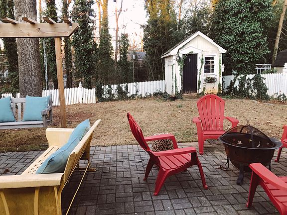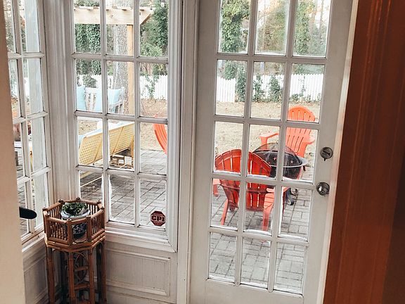 RARE OPPORTUNITY to be in ever popular Sunset Hills! Charming painted brick home w/hardwood flooring, classic black & white checkerboard tile, plantation blinds, vinyl replacement windows, pretty fireplace with gas logs, wired shed, brick patio & fenced yard. Updated kitchen with quartz countertops gas cooktop and oven, vented exhaust hood, stainless appliances and farmhouse style cast iron sink. Currently has a CPI Security system (installed in 2018) and built in sound system inside and outside.