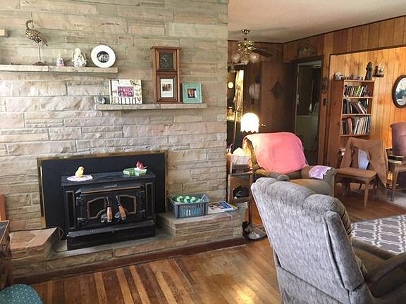 This 1950's ranch is located on 3/4 acre with beautiful mature tress that shade the backyard. House needs some updating but has hardwood floors that can been seen in part of the house. Fireplace with wood insert. Aluminum siding and covered patio. Attached garage was converted into living space that can be a 3rd bedroom (no HVAC only window units in this room) Large laundry room with storm shelter under it, entrance from the house. Main house central heat and air replaced 2 to 3 yrs ago per owner,by Hartleys. Bedrooms are large and there is a 1/2 bath off the kitchen area. Carport to protect cars. 2 storage buildings and a carport in back of yard for equipment protection. Roof was replaced in last hail storm . Nice location and you will love the backyard County shows as lower sq ft attached garage was converted into a bedroom . Garage was converted into living space. Travelers is current insurance company .