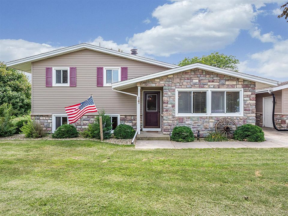 Updated 3BR/3BA home on lovely landscaped and partially fenced .59-acre lot! Gorgeous prairie flowers throughout. Tons of room to roam with large patio & firepit perfect for entertaining and relaxing- plus a greenhouse. Step inside to find pleasing neutral decor, vaulted ceilings, recessed lighting and so much space. Formal dining room and eat-in kitchen with hardwood floors, center island, breakfast bar, stone tile backsplash and stainless steel appliances. Lower level living room with cozy fireplace. Master suite includes private bath. Absolutely gorgeous home offered at an unbeatable price - this one is truly a MUST SEE! Over 1,800 sq ft, oversized 2-car garage and so much more. Don't miss out!