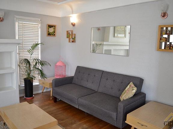 Adorable home or business with lots of character! This 2 Bedroom, 1 Bath home is in move-in ready condition and includes a separate 260 sqft bonus room with 2 closets that can be used for an extra bedroom, office, or storage space. Lots of charming features include a large living room, cozy fireplace with floor to ceiling white plaster surround with built-in shelving, original hardwood flooring, nice sized bedrooms, newer paint, and updated throughout. Additional attached 5 x 8 storage room. Nice backyard surprise with sitting areas, yard, and storage shed. Lots of options with this property whether it's a home or business, the sky is the limit!