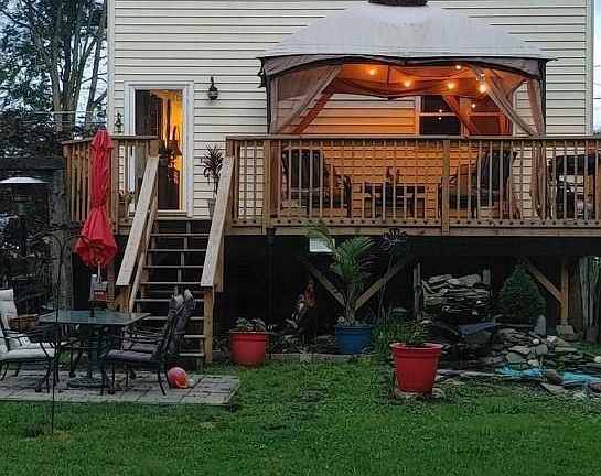Don’t miss the opportunity to call this wonderfully maintained 4 bedroom 2.5 bath home! You will love the updates including new roof on the house, garage/shed, new carrier 96% GAS furnace & heat pump, new electric HWH(in addition to the tankless gas HWH), updated 1st floor bathroom, brand new butcher block countertop. One of the best upgrades is the new deck that overlooks your fenced in private oasis with a firepit, chicken coop, duck enclosure and it backs up to woods! On the main level you will find an enclosed entry area with large closets, good size living room, kitchen with wine cooler and dining room with pantry, full bathroom, hall closet and family room leading to the deck. On the upper level you will find 3 good sized bedrooms with great closet space, hall bath, hall closet and great sized primary bedroom with half bath and 2 closets & did I mention the one is a HUGE walk-in closet? There is a new whole house fan in the attic. The basement has the laundry, mechanicals and LOTS of storage! There is plenty of off street parking in the driveway and detached garage/shed. Schedule your appointment today!