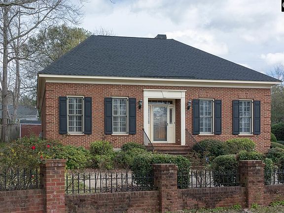 Fabulous all brick courtyard home with master on main level. Master suite bath features remodeled shower. Additional bedroom with private bath on first floor makes for a great study. Second bedroom down has bay window and private bath. Third bedroom is on second floor and it also has a private bath. Great for another living space or for guests. Great room has masonry fireplace and French doors that open to the patio and private yard. Arched entry leads to formal dining room with wainscotting. Eat in kitchen has been remodeled and features granite and stainless steel appliances. Hardwoods throughout. Heavy mouldings, 9' high ceilings, plantation shutters. Termite bond & tankless water heater. Minutes away from Trenholm Plaza, Trader Joes, and Whole Foods.