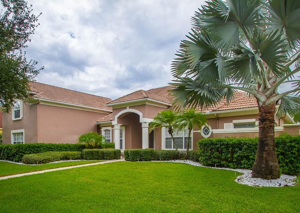 This home is back on the market at a great price and is move in ready! 3400 SQ FT Executive ABD custom built pool home in the gated community of Palma Vista. You are welcomed into the home by the very impressive glass front doors that open onto the foyer and look onto the formal living room with the large screened-in Lanai and pool. The SELF-CLEANING SALT WATER POOL is solar heated and has a heated SPA, all screen-enclosed, and the current owners added a child safety fence for the pool. Entertain in the formal dining room large enough to accommodate your table, buffet, and china cabinet. There is a dedicated office/den with built-ins. The first floor Master bedroom has an attached en-suite with dual vanities, a jetted Jacuzzi tub, large walk-in shower, a CUSTOMIZED CLOSET, and private access to Lanai. The home has a split bedroom plan that allows for privacy for both the owners and guests. The UPSTAIRS BONUS ROOM has plenty of room for a pool table, playroom, or possibly a guest bedroom as it has a full bathroom and closet. The kitchen, open to the Family Room with surround sound, features granite counter tops, breakfast bar, dinette area, large closet pantry, and stainless steel appliances. All appliances stay with the home including the washer and dryer. Topping off the amenities is the attached oversized 3-car side-entry garage! Excellent central Orlando location close to shopping, major highways, and theme parks. Call for your private showing today!
