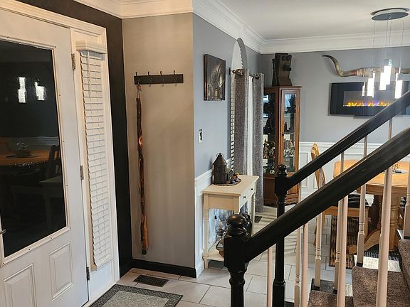 Very tastefully remodeled traditional 2-story home at end of cul-de-sac street, offering a private overlook in back from multi-tiered decking. Popular floor plan with large living room featuring attractive ceramic tile flooring & gas fireplace. Formal dining room with wainscoting. Extensive crown molding throughout main level adds an elegant touch. Wall-mounted electric fireplace in dining room included. Wonderfully remodeled island kitchen features a pass-through to dining area. You'll love the extensive Shaker style cabinetry, the granite countertops, and upgraded stainless appliances including a gas range! Updated lighting fixtures! Upper level has large bedrooms plus a huge bonus room that can be used for a 4th bedroom if needed, Separate laundry, guest bath, and has beautiful new luxury vinyl plank flooring! This home has been meticulously maintained, and is sure to please! Ready to move in without any work to do! Newer gas water heater & recent dimensional roofing shingles. Blinds remain but drapes do not convey. Per owner, there is no subdivision HOA, so restrictions noted are only what applies per what the original developer recorded.